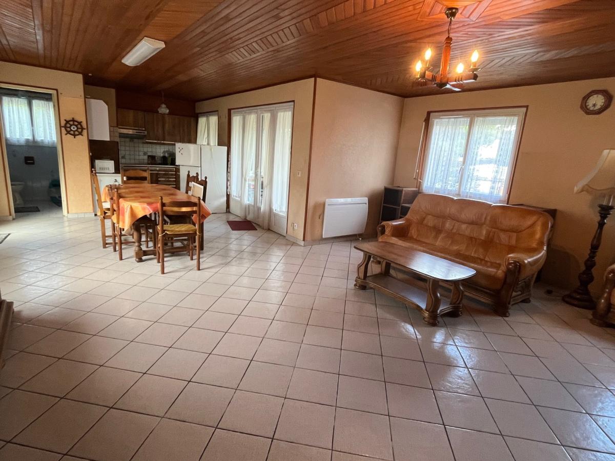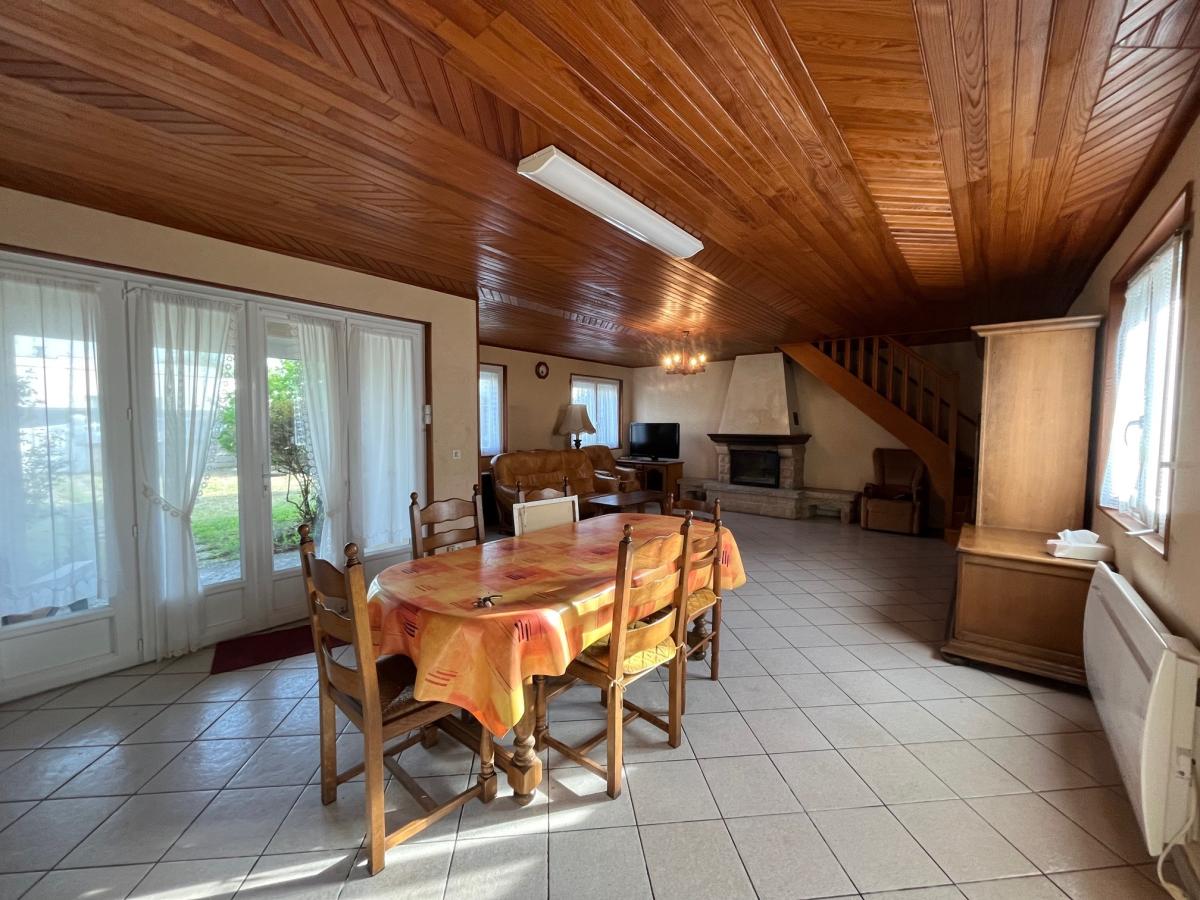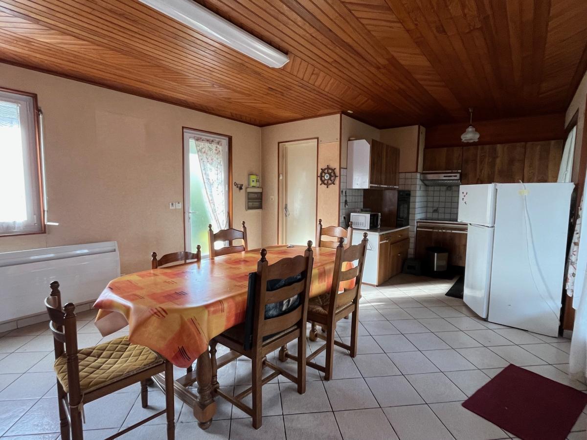 Elle comprend : un patio, une cuisine ouverte sur salle à manger et un salon avec un insert, salle d'eau avec wc.