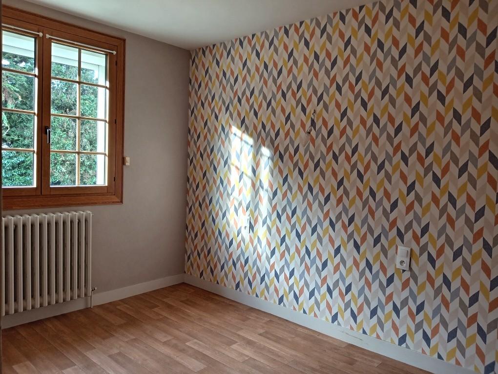 Au rez-de-chaussée : cuisine aménagée et équipée, salon/séjour avec cheminée et accès terrasse, couloir, salle d'eau, wc séparés, deux chambres