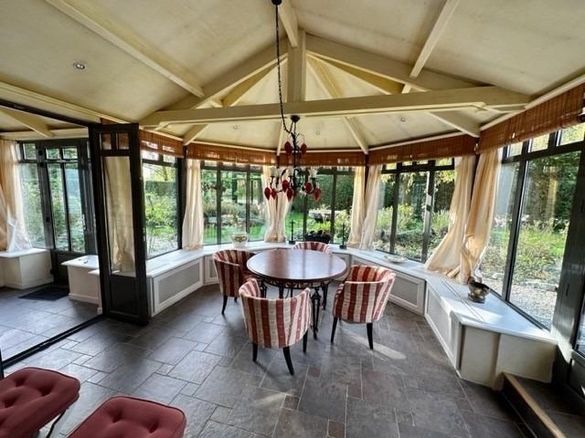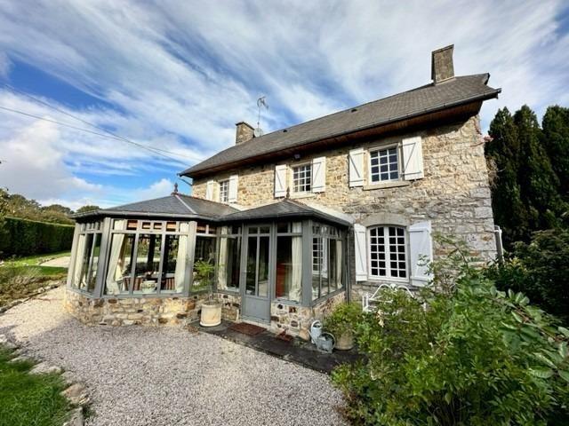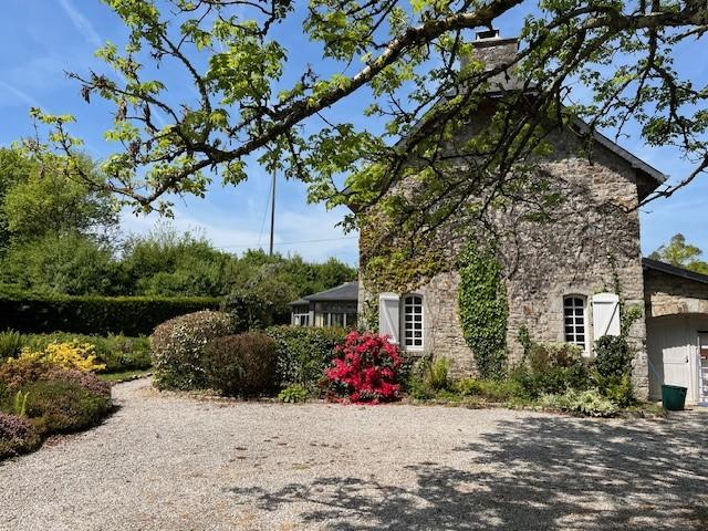 - Au rez de chaussée: entrée, salle à manger en rotonde, séjour avec cheminée, cuisine équipée, dégagement, débarras, WC avec lavabo, buanderie, une petite chambre, garage.