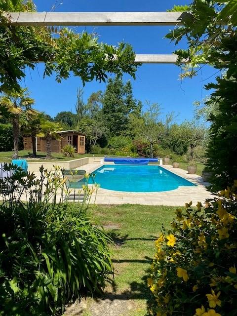 Grand terrain arboré autour pour 3 289 m² avec piscine et cabanon. Prés à la suite pour 31 494 m² (loués).