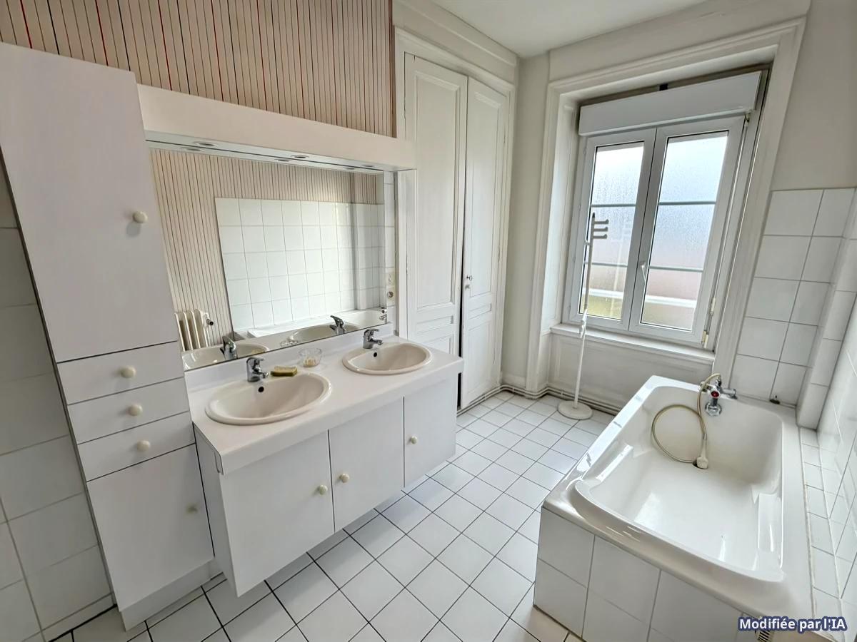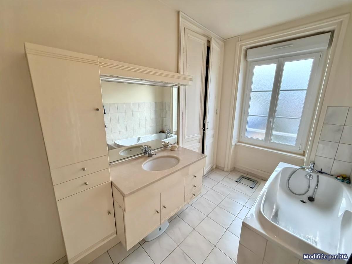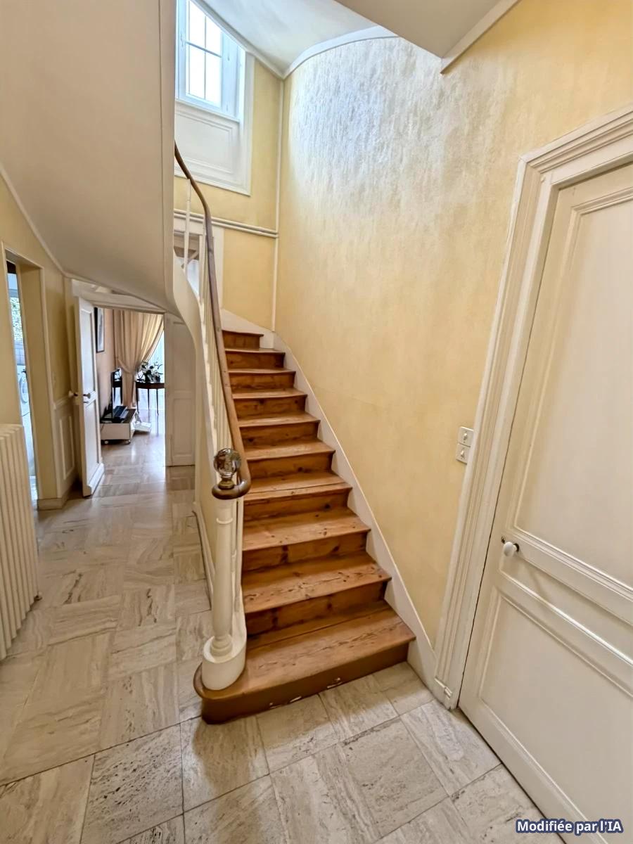 - Au deuxième étage : palier, trois chambres, WC, salle de bains avec douche et baignoire.