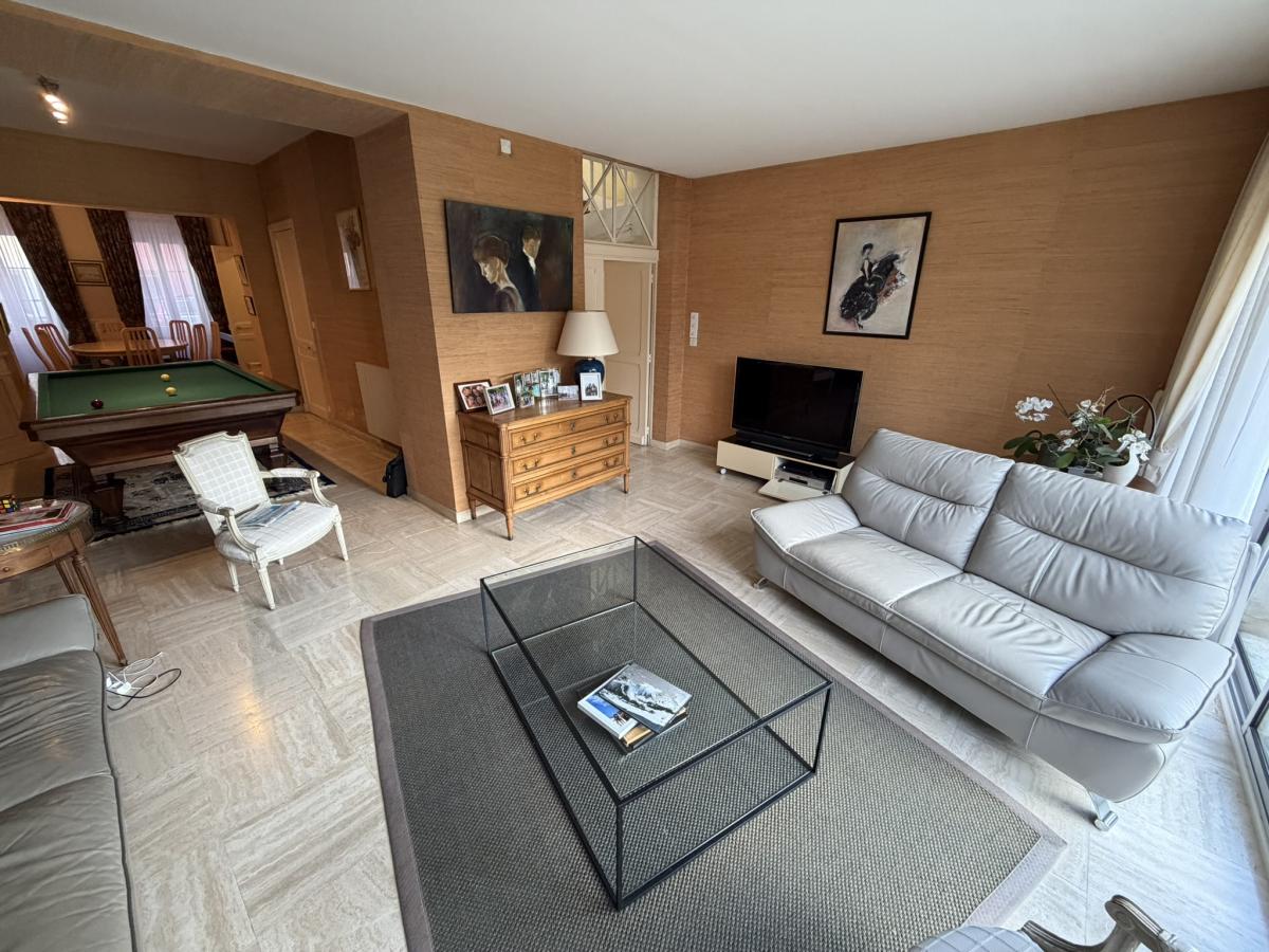 - Jardin derrière avec terrasse dallée et store banne, dépendance comprenant une salle de jeux et une cave à vin. Jardin à l’arrière de la dépendance clos de murs avec cellier.
