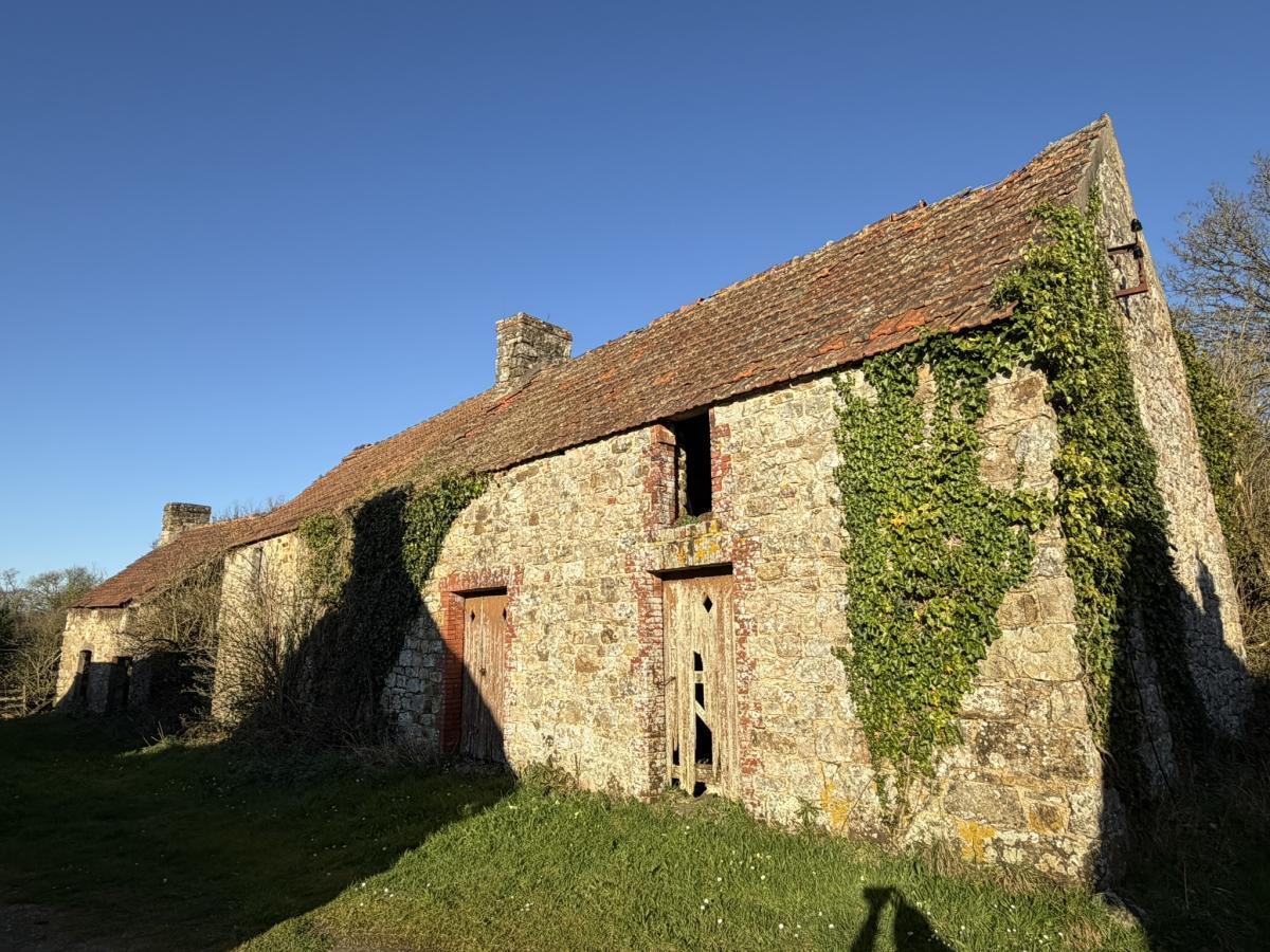 BRICQUEBEC, dans un hameau à 4,5 km du bourg, ensemble de granges à restaurer avec terrain. Présence d'une arrivée d'eau. Non transformable en habitation.