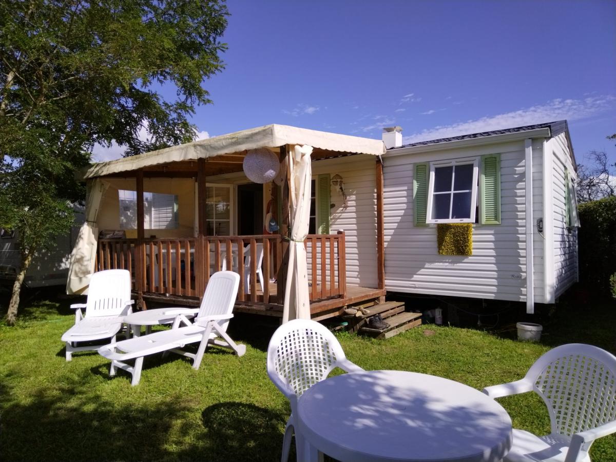 - Mobilhome comprenant séjour avec cuisine ouverte équipée, deux chambres, salle d'eau, WC.