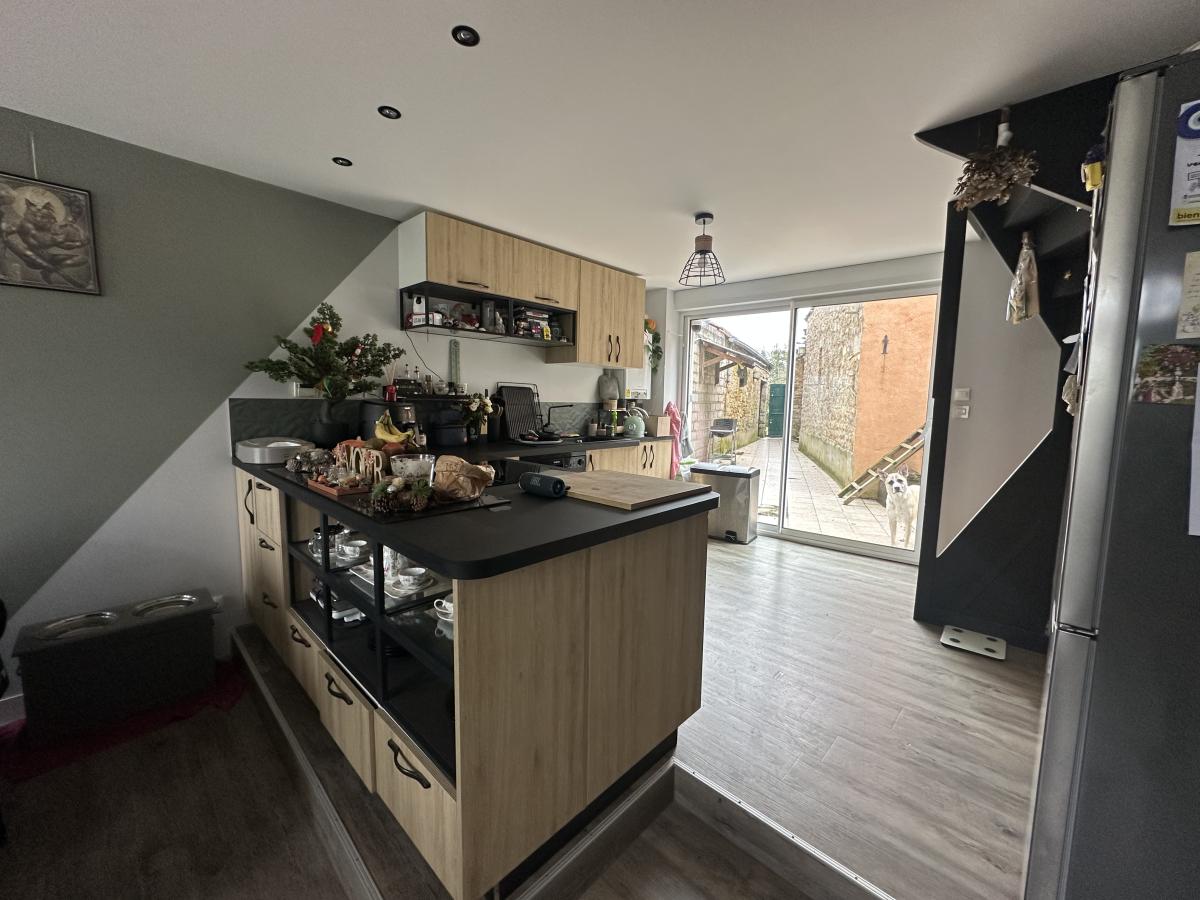 Elle vous offre au rez-de-chaussée : Une belle pièce à vivre avec baie vitrée donnant sur l'extérieur exposée sud composée d'une cuisine aménagée et équipée, d'une salle à manger et d'un salon (environ 45m²), une salle d'eau + wc, une chambre.