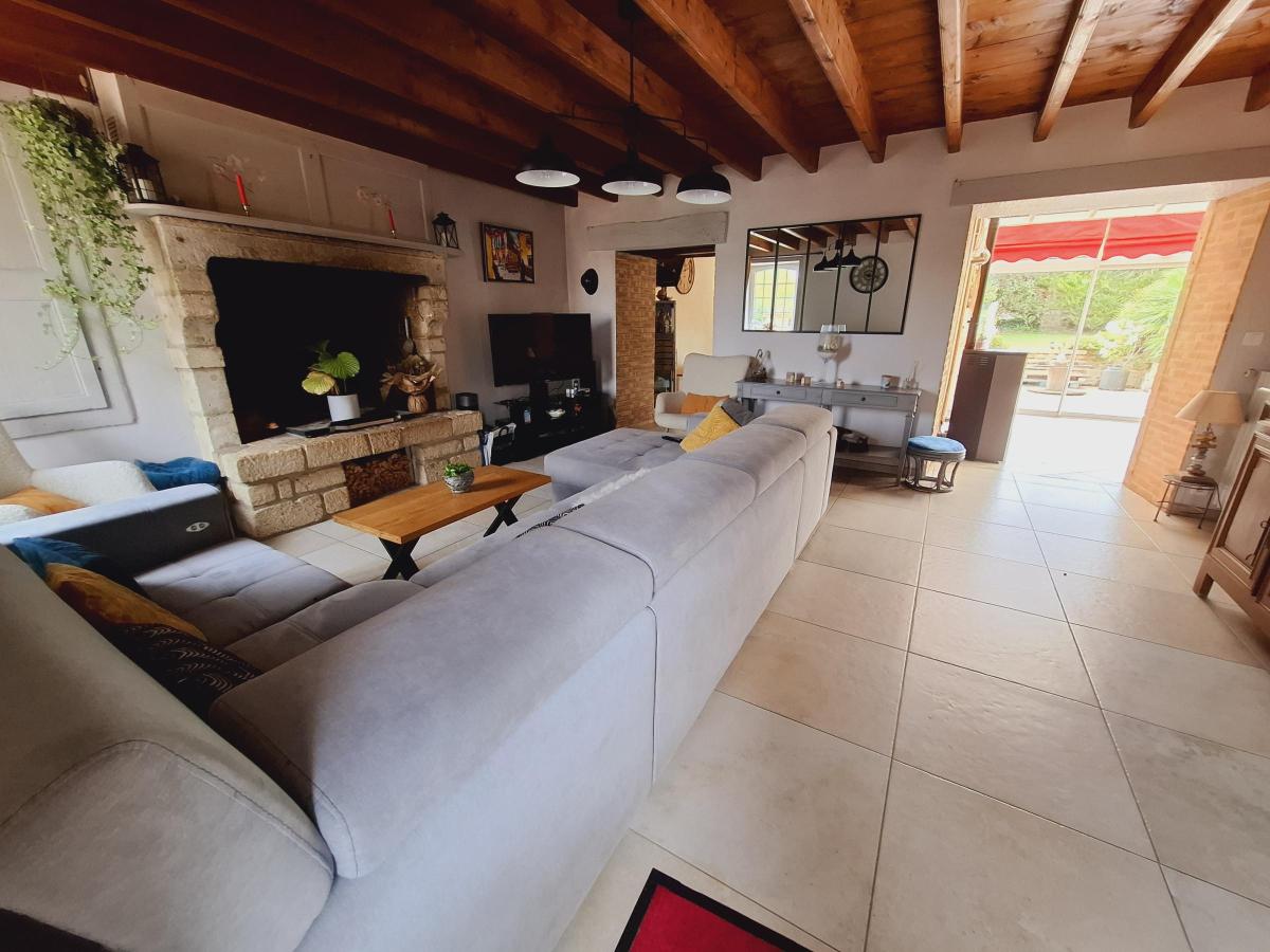 - au rez-de-chaussée : séjour-salon avec cheminée, cuisine, véranda avec poêle à granulés, buanderie, chaufferie, bureau, salle d'eau avec toilette.