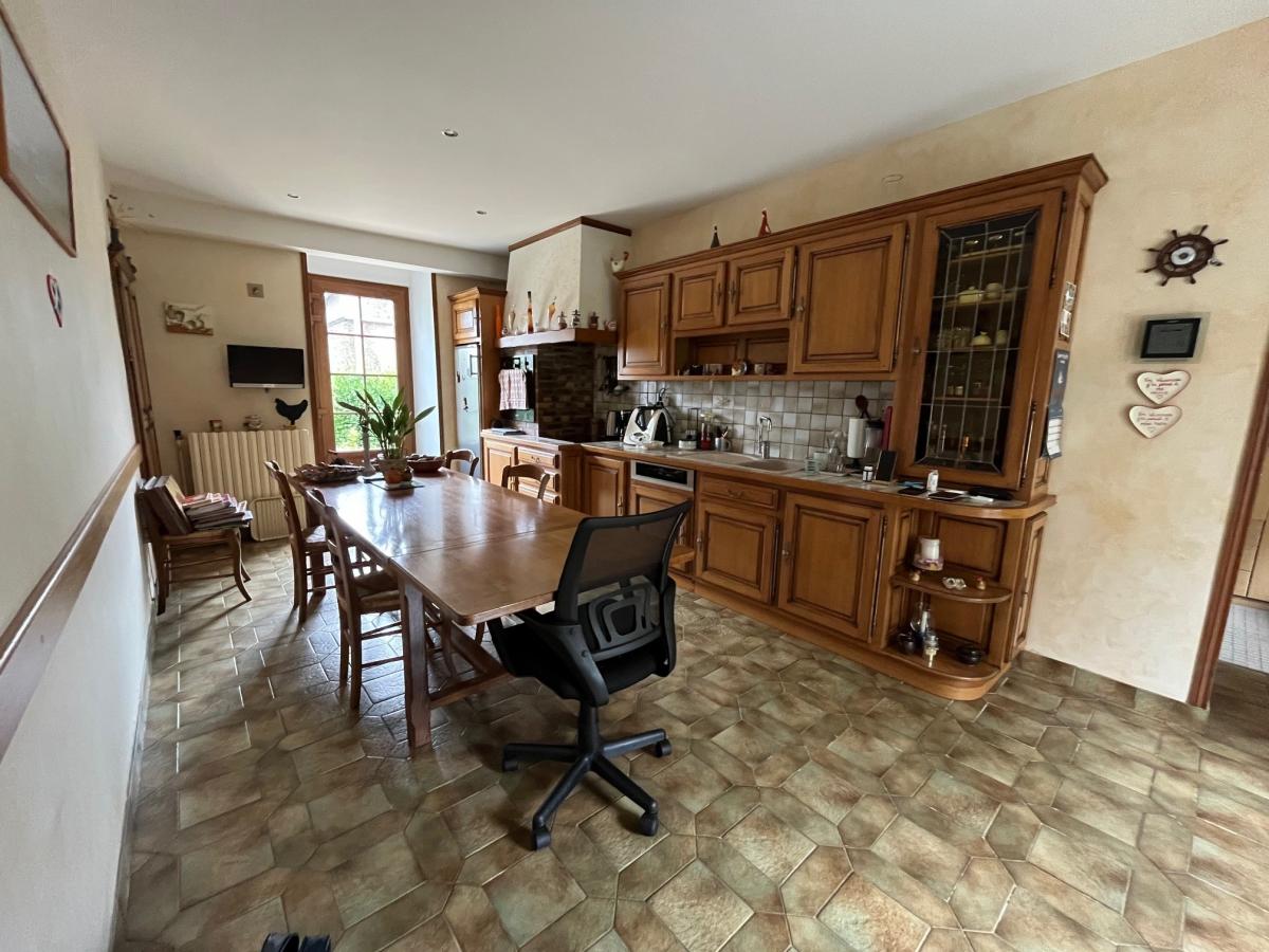 Une maison d'habitation en pierres, entrée, cuisine équipée (éléments hauts et bas, plaque de cuisson, hotte, four) 20 m², salle à manger avec cheminée en pierres 27 m², salon 35 m², arrière cuisine, wc,