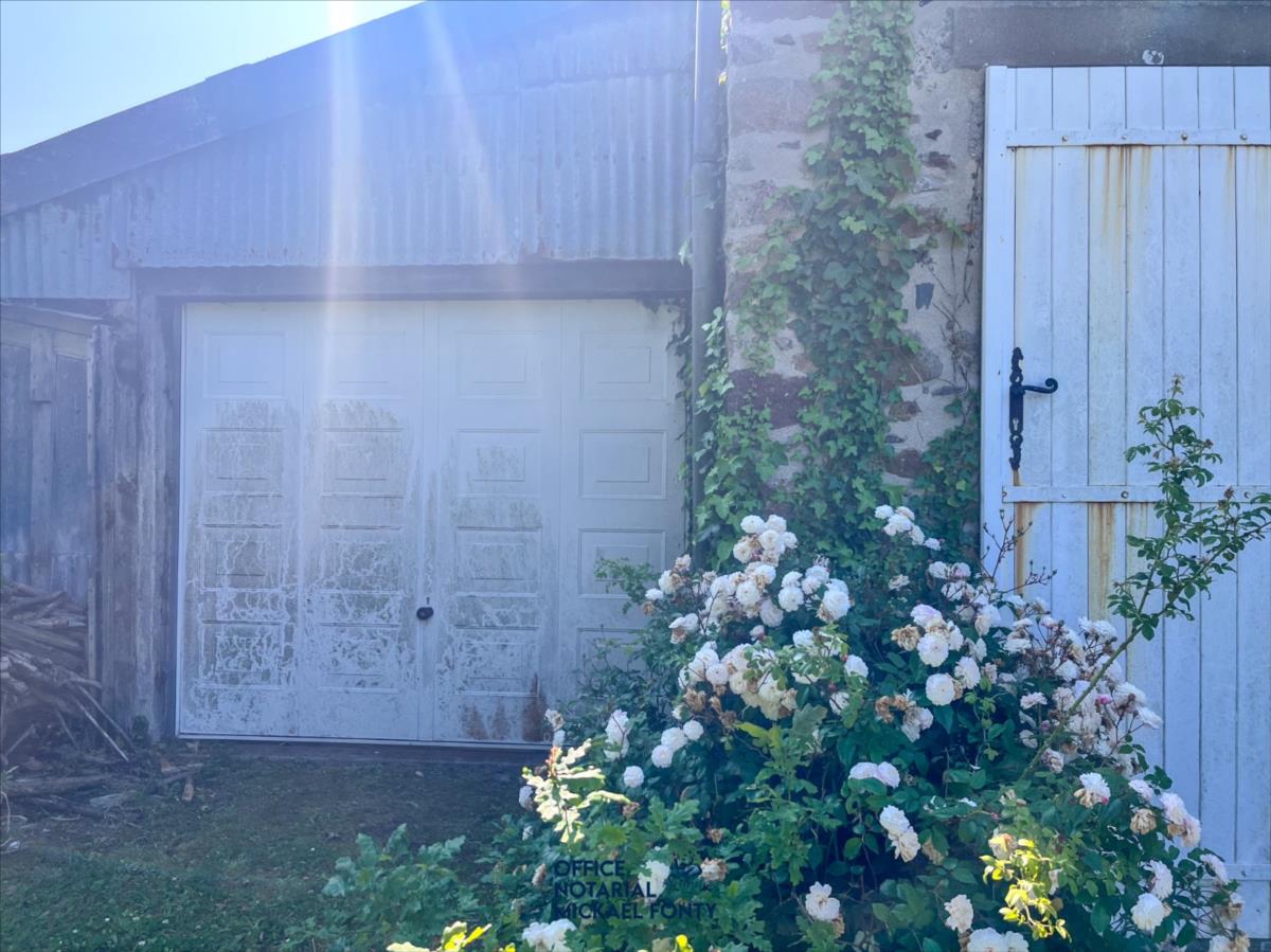 l’extérieur de la maison et un garage. Grand jardin tout autour.