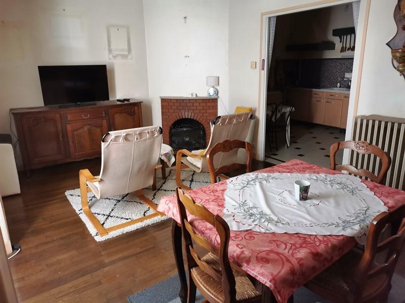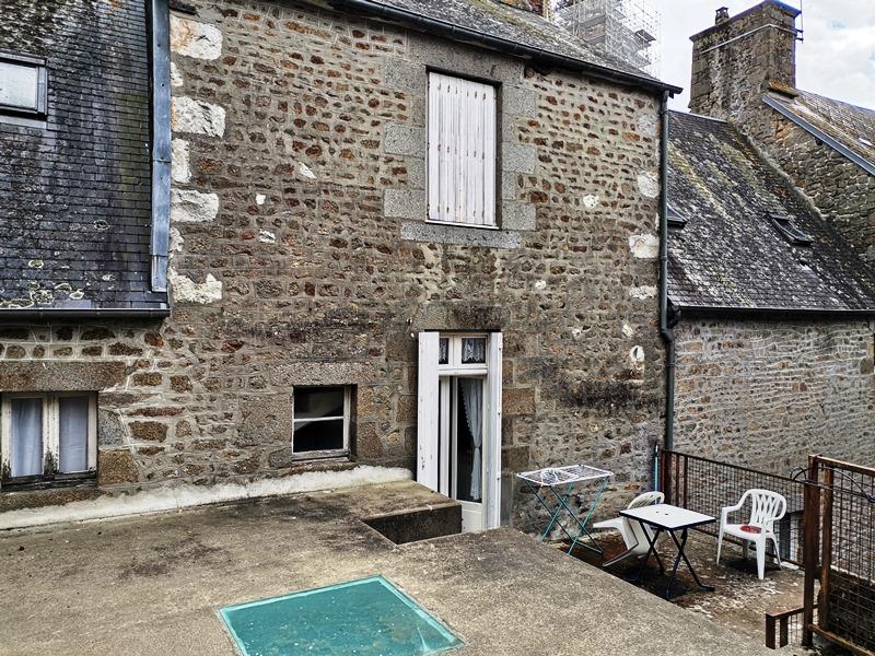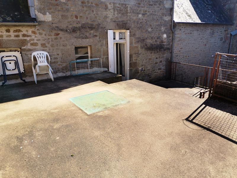 Centre ville: Maison en pierres comprenant au rez-de-chaussée deux garages, wc, cour fermée couverte, deux terrasses, couloir d’accès à la cour, au premier étage, palier, cuisine donnant sur deux terrasses, séjour avec cheminée, salle de bains, wc, au deuxième étage trois chambres, grenier sur l’ensemble, garage, cave en sous-sol, double vitrage, chauffage gaz de ville, prix 69 875 € HN à la charge du vendeur