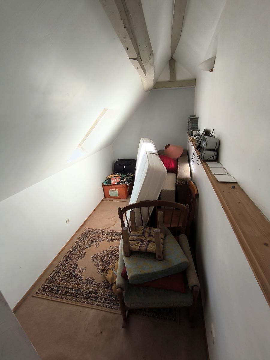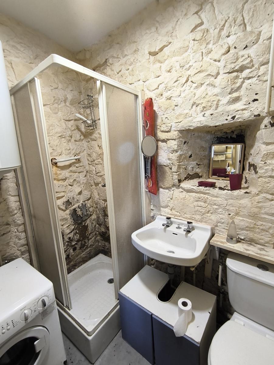 Au coeur du quartier médiéval, Maison de 3 pièces principales avec courette. Le rez-de-chaussée comprend un séjour avec poêle à bois, cuisine, salle de bains avec wc. Au 1er étage : une chambre et une pièce. Abri de jardin en dépendance attenante. Courette.