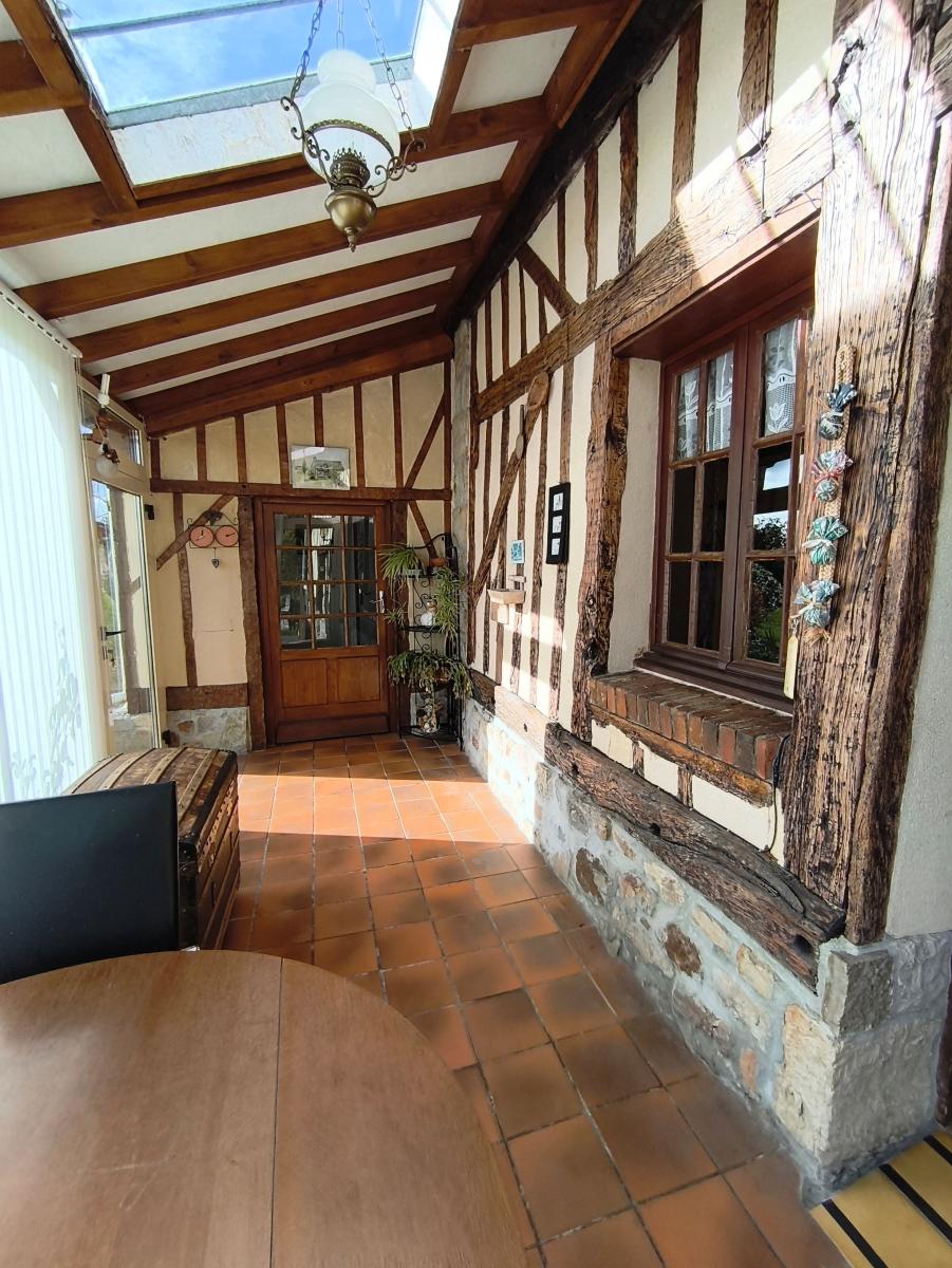 A proximité de Domfront, dans hameau en campagne, maison de 5 pièces principales et véranda, avec dépendances sur env. 2.000 m² de terrain.