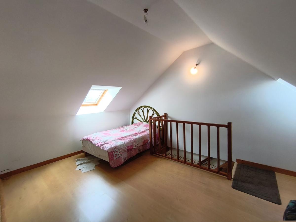 Le rez-de-chaussée est composé d'un séjour avec cheminée et cuisine ouverte, salle d'eau, wc, cave,