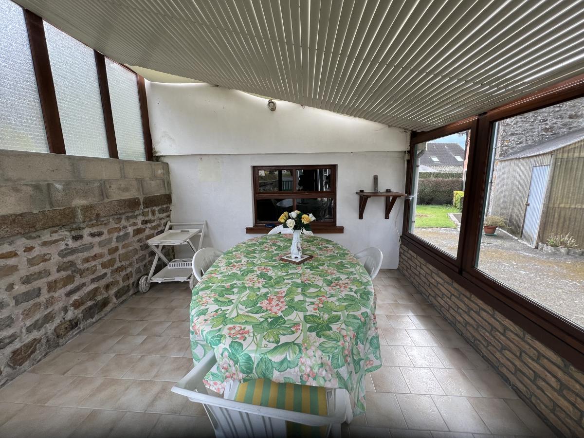 Cour avec véranda d'été et petit jardin.