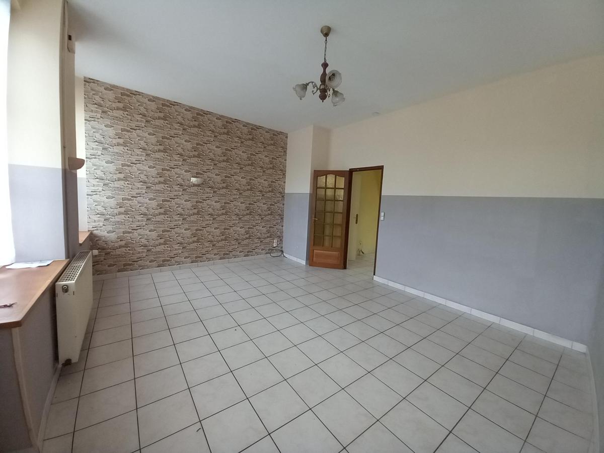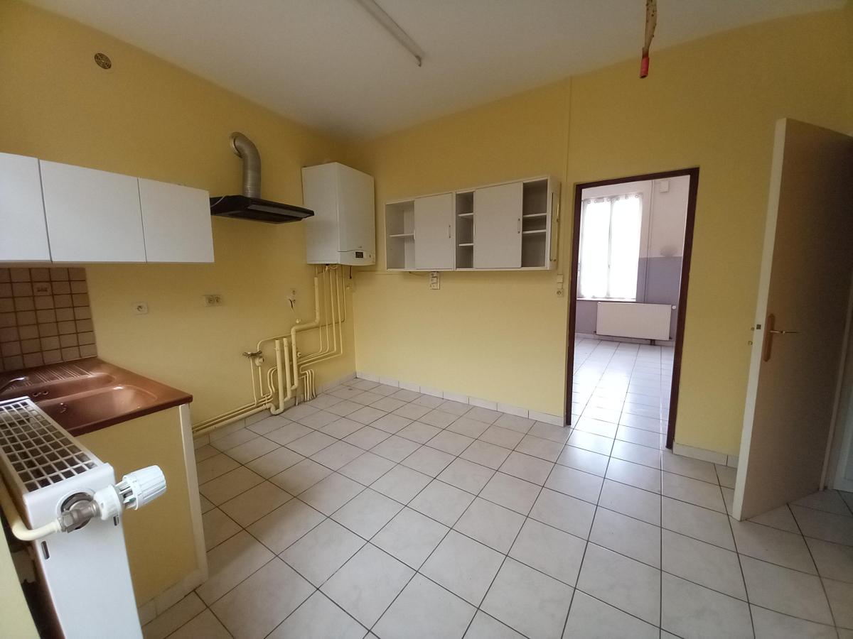 Maison de bourg comprenant, RDC : cuisine - séjour - courette couverte (WC) - Premier étage : deux chambres - salle de bains et WC - Deuxième étage : deux chambres - Jardin. . l'ensemble pour 4a 63ca. Chauffage central gaz par citerne. Tout à l'égout.