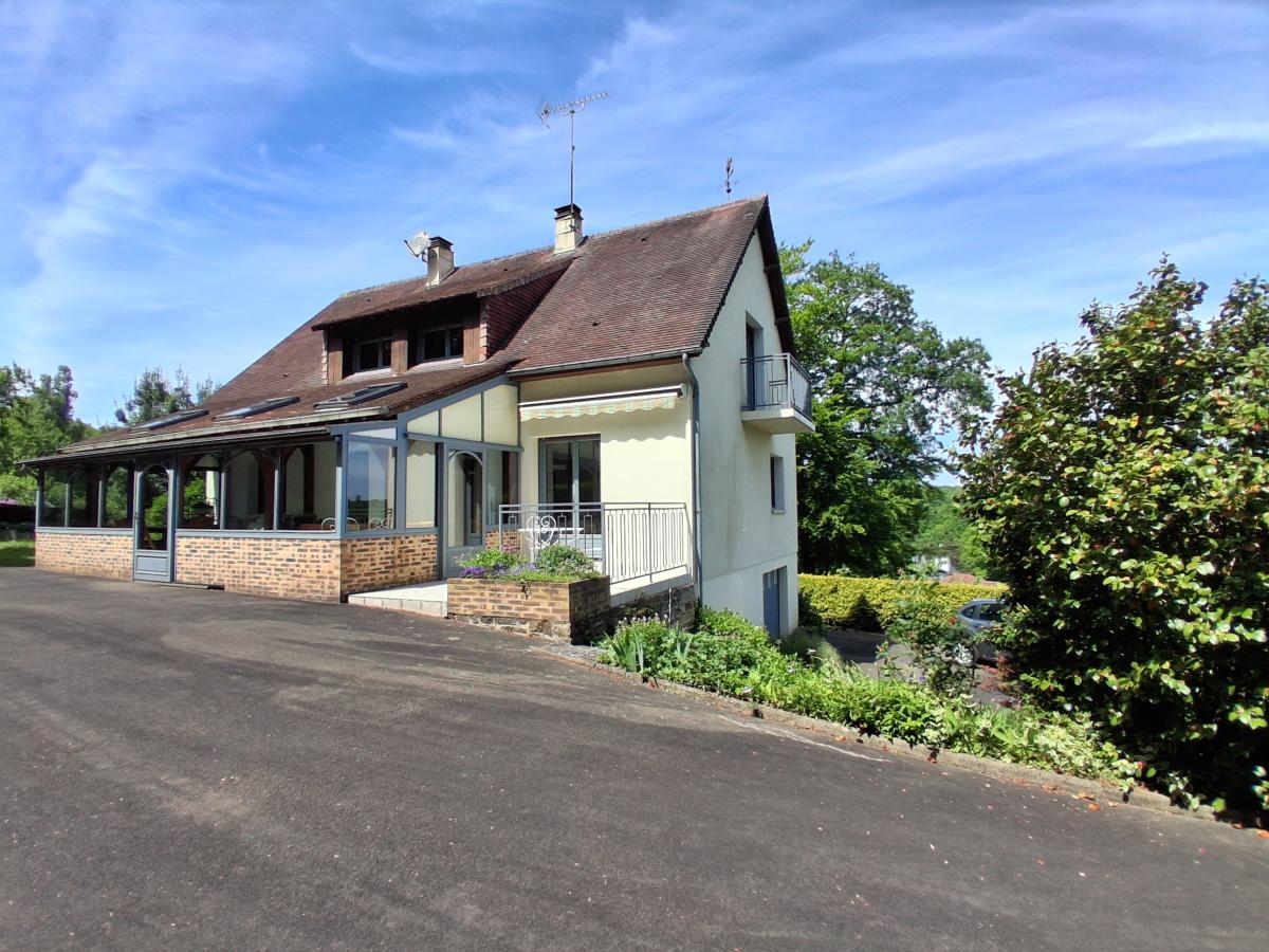 Maison confortable, jolie vue, comprenant, RDC : entrée - véranda chauffée -Pièce de vie : cuisine aménagée-salle à manger-séjour (poële à bois), chambre avec placard - salle d'eau - WC - débarras - Etage : palier - pièce de rangement - trois chambres chacune avec placard pouvant être aménagé en dressing - salle d'eau avec WC. Sous-Sol divisé en garage, chaufferie, atelier. Parc arboré. L'ensemble pour 1670 m².