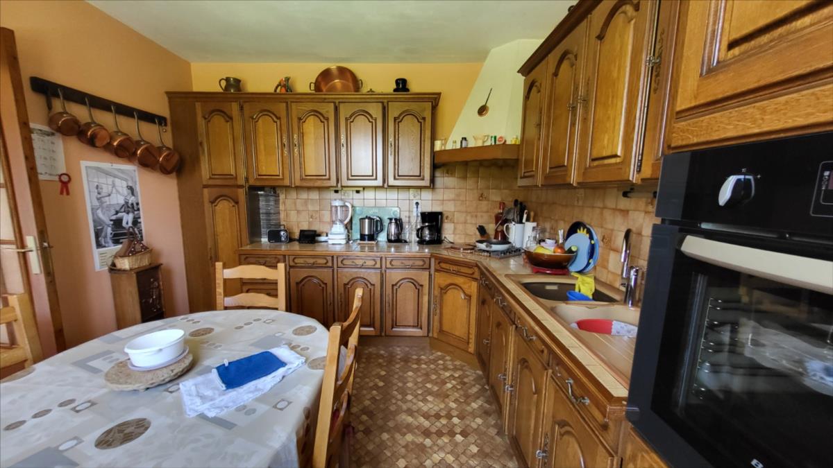 Propriété sur 3ha plats avec dépendances en campagne, au calme. Pavillon de plain-pied bien entretenu : entrée avec placard, séjour avec cheminée équipée d'un insert, cuisine aménagée rustique, couloir desservant trois chambres, salle de bains, wc séparés. Garage attenant avec point d'eau. Trois dépendances dont un ancien four à pain.