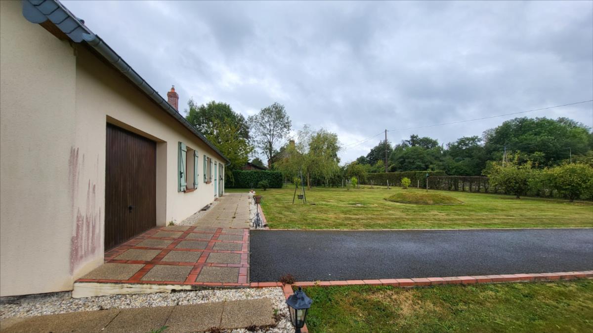Pavillon d'environ 87 m² bien entretenu comprenant entrée, cuisine aménagée et équipée, séjour avec cheminée équipée d'un insert, couloir desservant trois chambres, wc, salle de douche. Garage attenant avec buanderie et chaudière murale au gaz avec cuve enterrée; grenier aménageable au-dessus. fenêtres en double vitrage bois. Assainissement individuel aux normes. Une dépendance en tôle avec électricité ; deux abris en bois