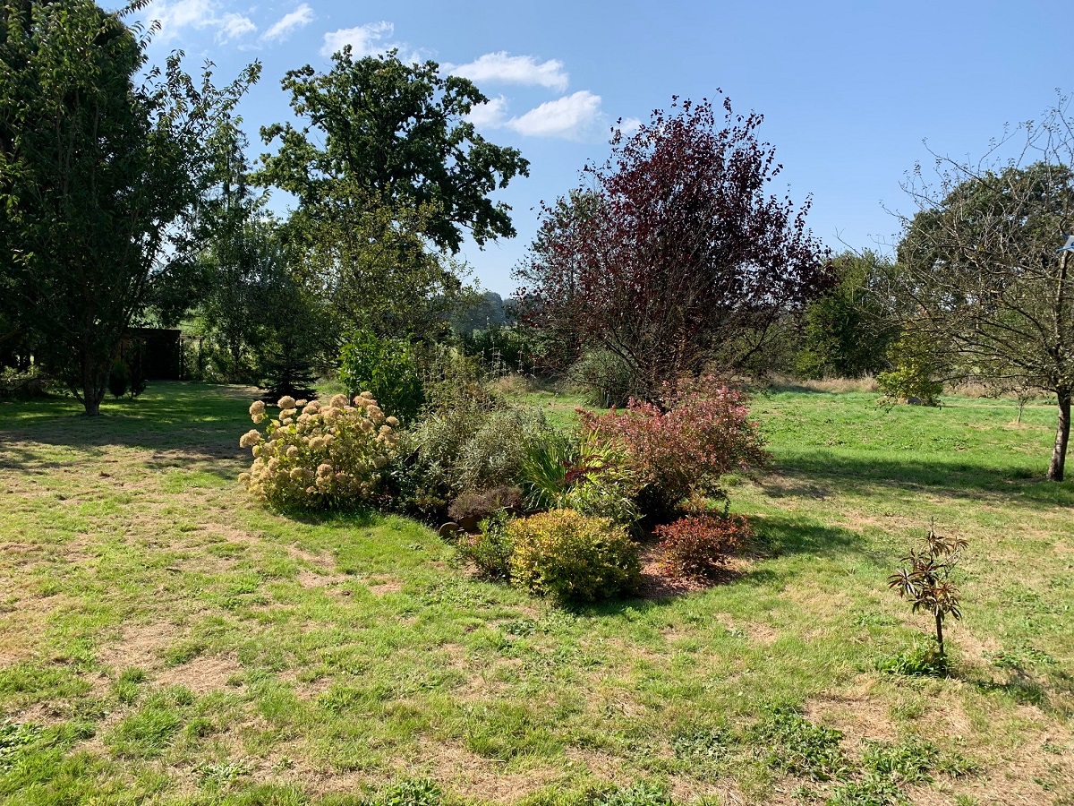 On trouve sur la propriété, en plus des arbres décoratifs et une variété d’arbres fruitiers (pommiers, cerisiers, pruniers, un poirier, framboisiers, groseillers et cassissier).