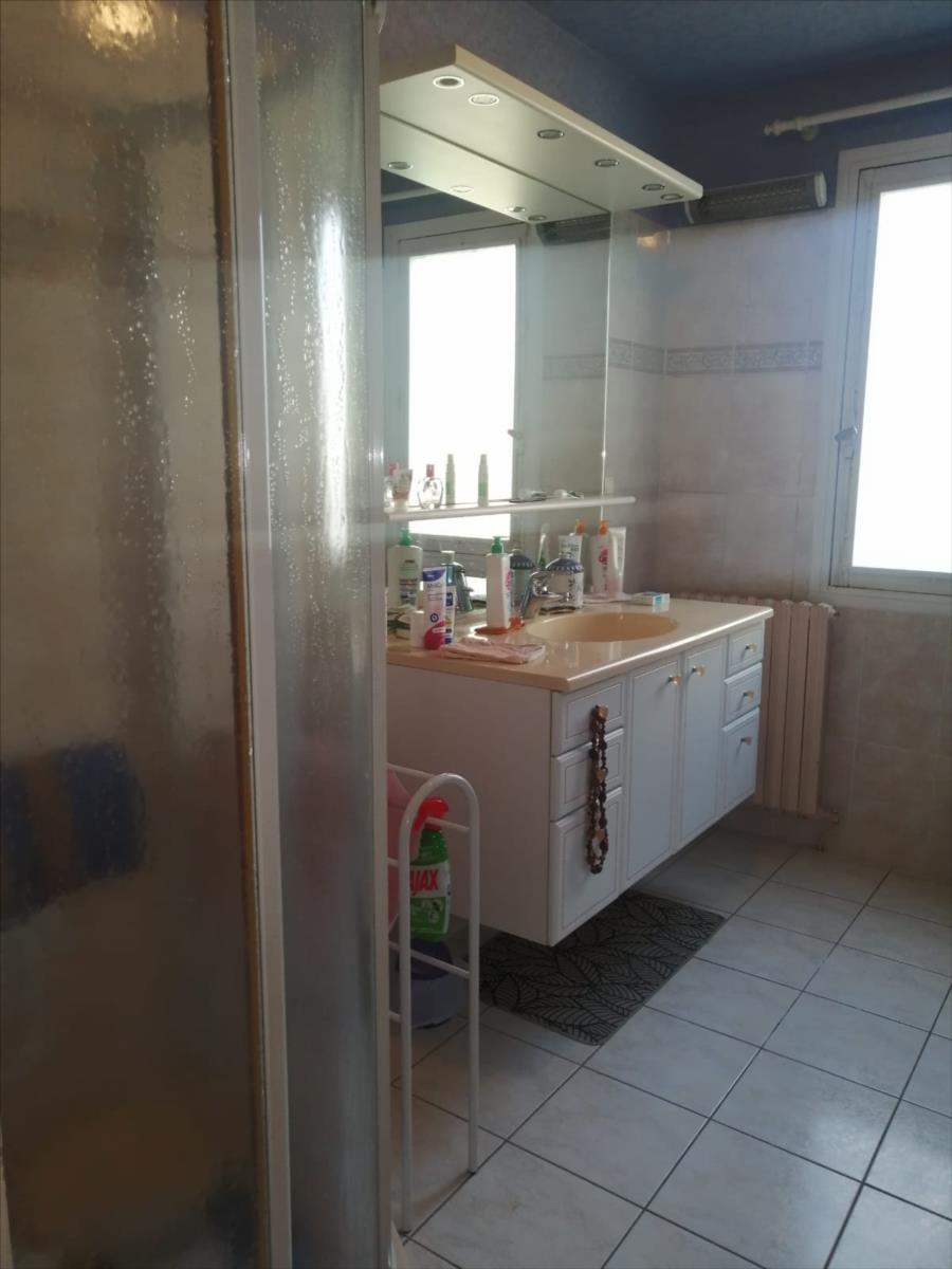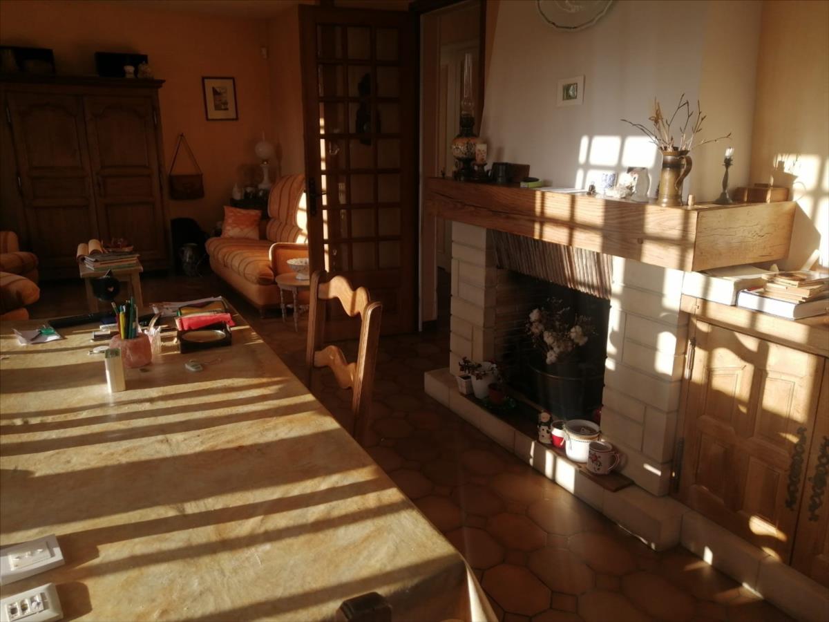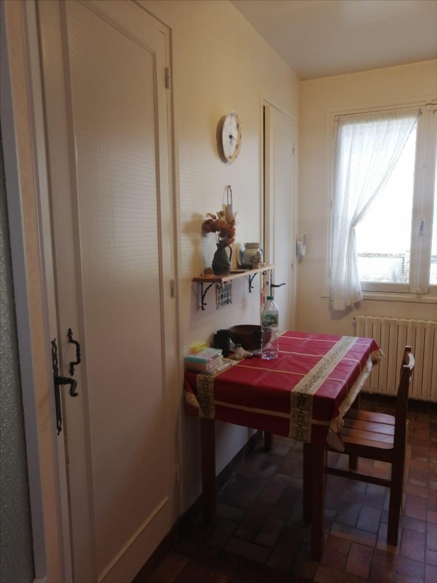 entrée avec placards, WC, séjour salon de 26 m2 avec cheminée et balcon dont l'exposition est au SUD, placards, cuisine avec