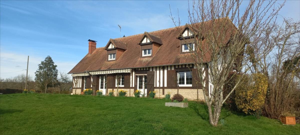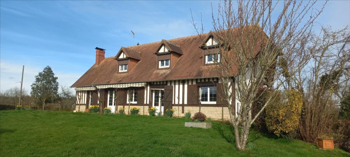 Une jolie maison avec vie de PLAIN PIED construite en 1977 avec des matériaux de qualité, comprenant :  - au rez-de-chaussée : entrée, séjour-salon de 35 m2 avec cheminée ouverte, cuisine aménagée et équipée et arrière cuisine, bureau, 2 chambres, salle d'eau et WC. - à l'étage : palier avec placards, 3 chambres, salle d'eau et WC. - au sous-sol : garage, cave et cuisine d'été. Terrain arboré, petit herbage avec plusieurs bâtiments (charreterie, serre et garage). Le tout sur 7104 m2 avec très belle vue   Les informations sur les risques auxquels ce bien est exposé sont disponibles sur le site Géorisques : www. georisques. gouv. fr