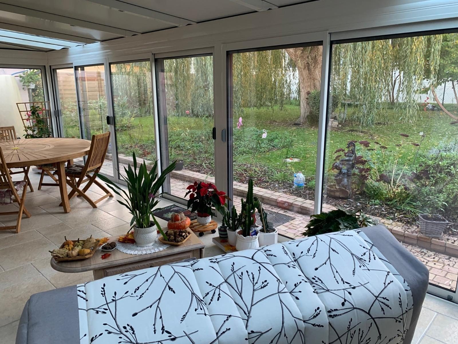Entrée, séjour-salon, cuisine, véranda (neuve), 2 chambres, salle de bains, salle d'eau, wc.