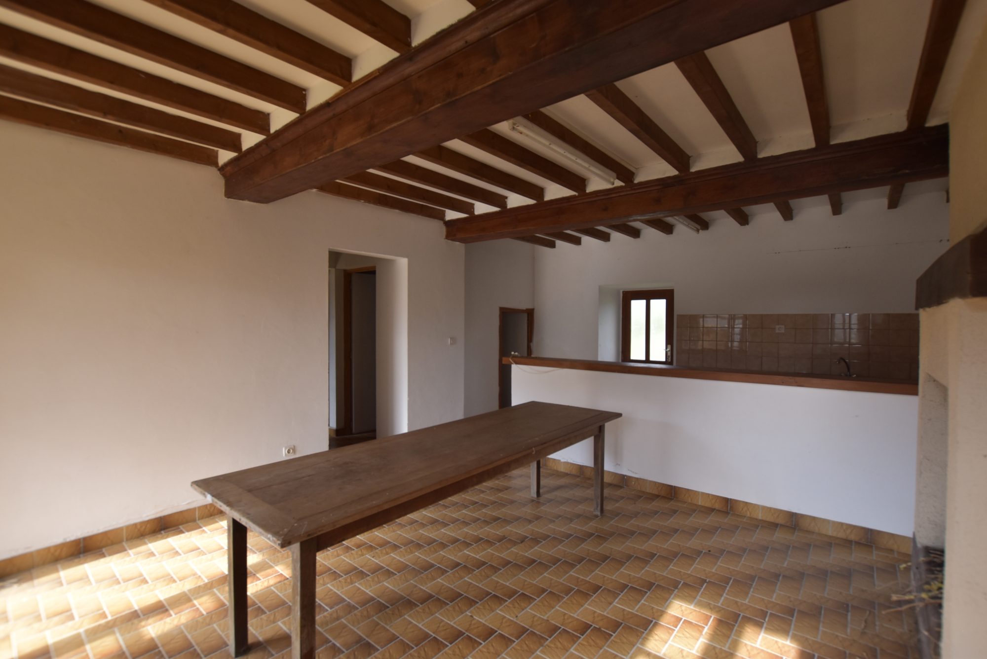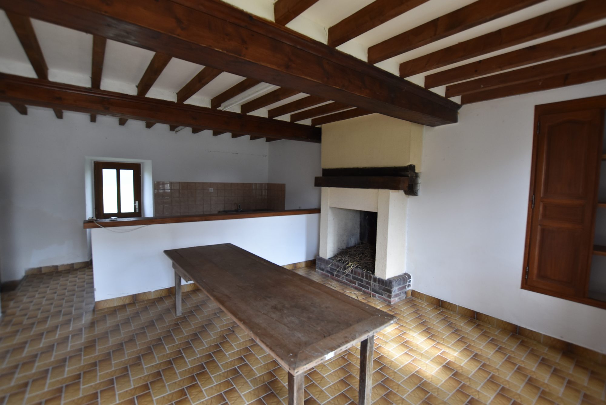 - Au rez-de-chaussée : salle à manger avec cuisine ouverte et cheminée, salon et WC.