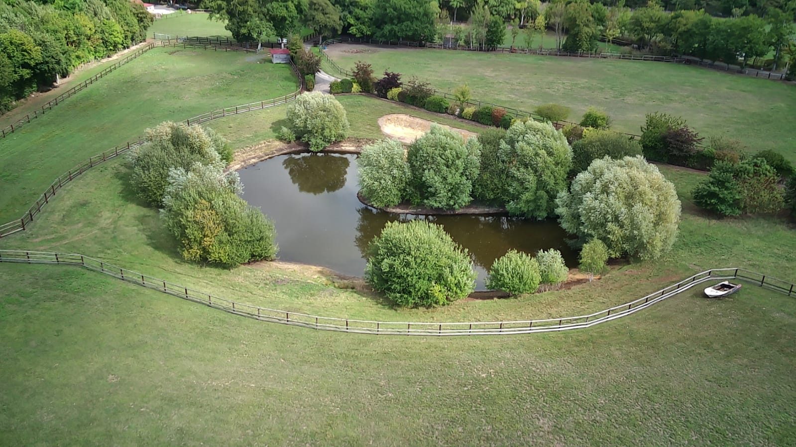 Les herbages sont libres, attenants et plats ! S'ajoute un étang. L'eau est fournie par forage tant pour l'habitation que pour les paddocks !