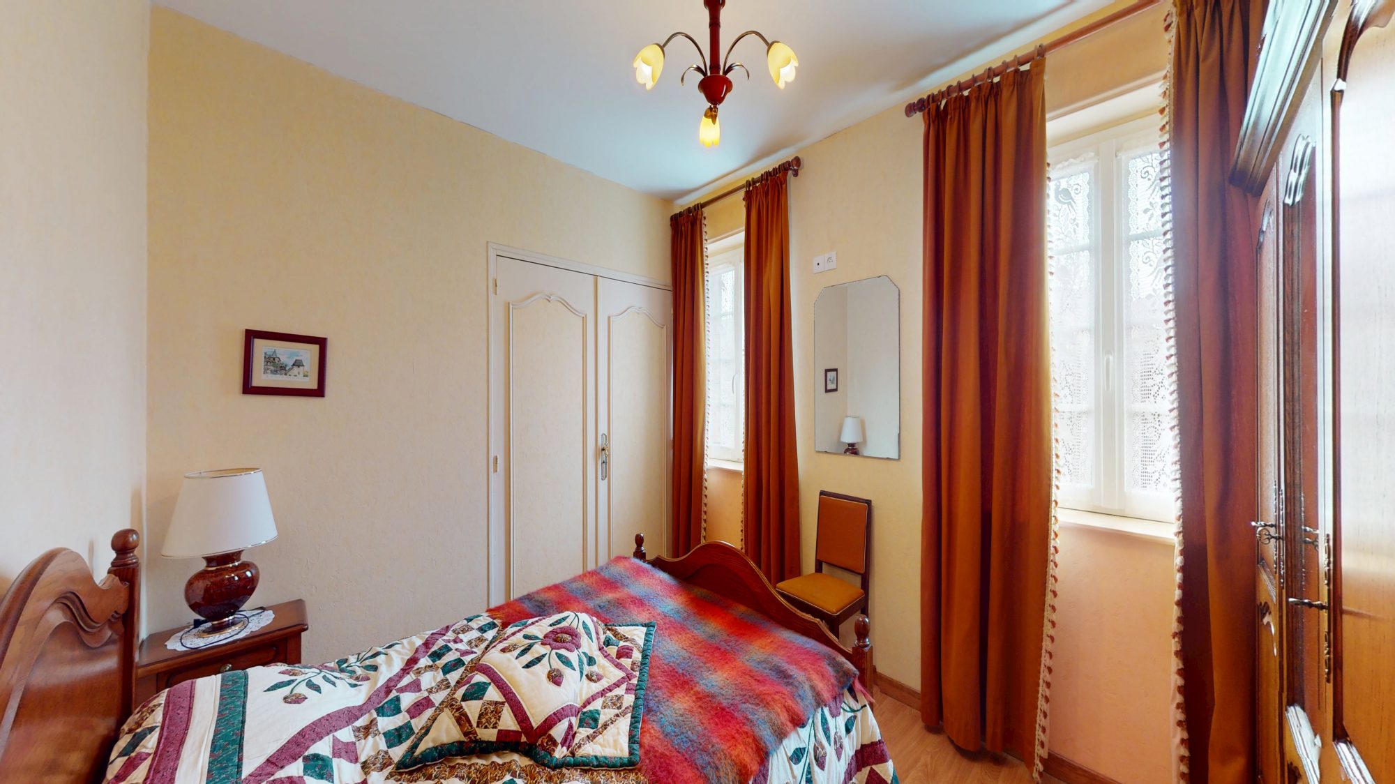 - d'un second logement à l'étage, comprenant : couloir, salle de bains avec WC, deux chambres, cuisine et débarras.