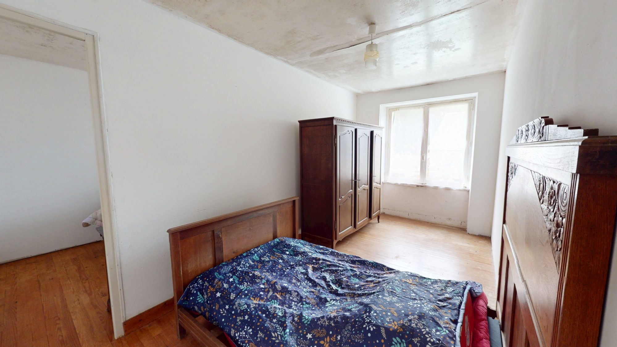 Huisseries bois simple vitrage. Pas de chauffage. Assainissement à mettre aux normes