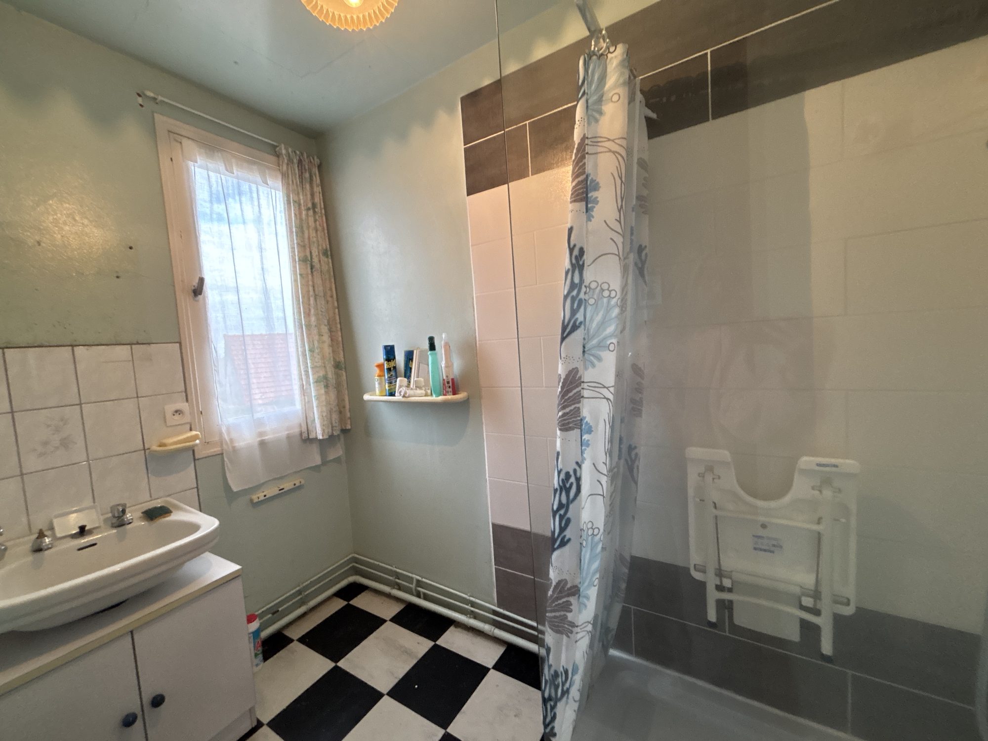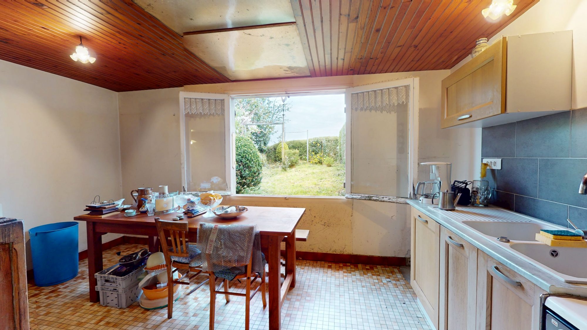 - Au rez-de-chaussée : dégagement avec poêle à granulés, cuisine, arrière cuisine / buanderie, séjour avec insert à bois et garage (dans lequel WC).