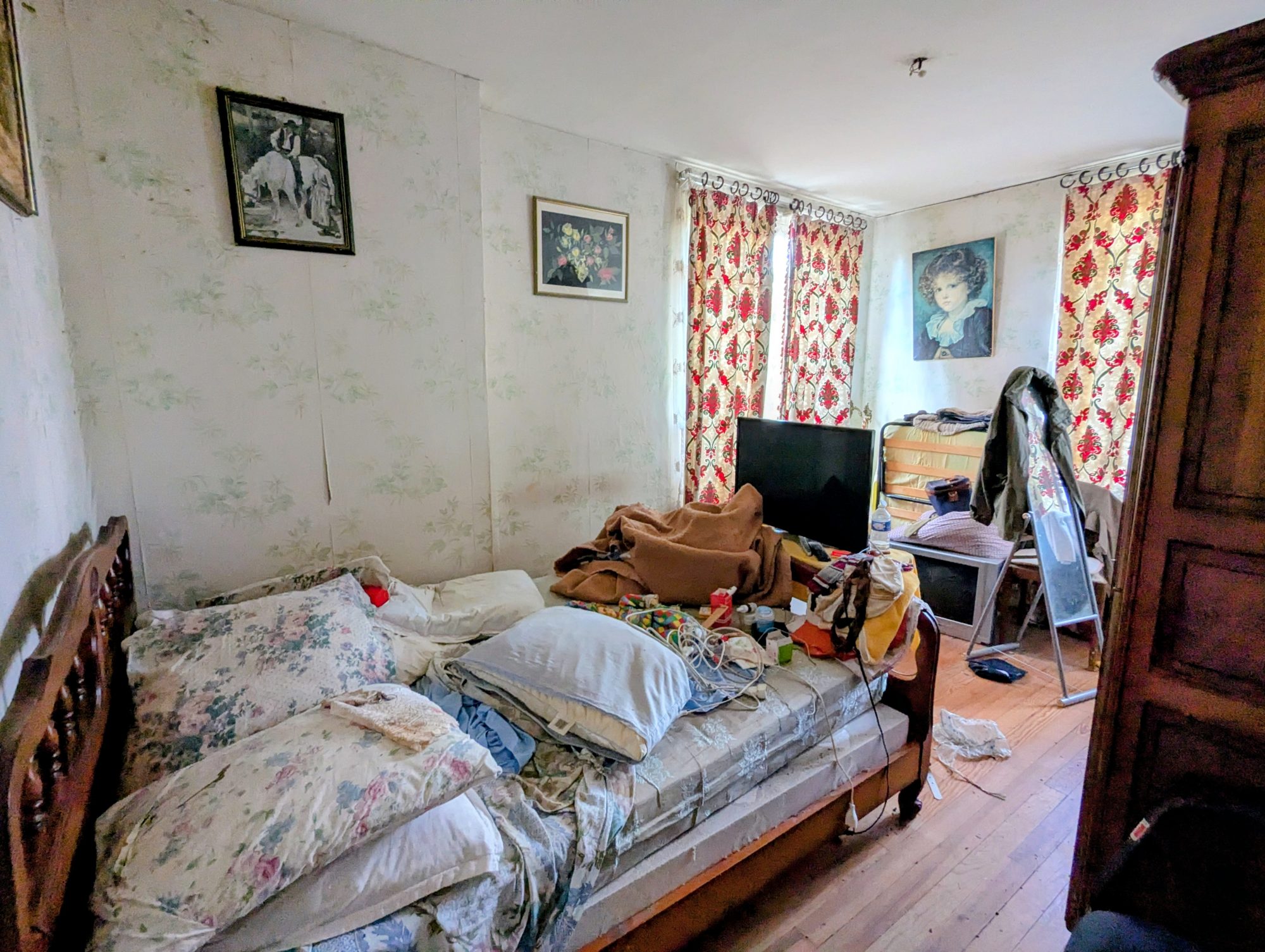 La maison, à rénover, se compose, au rez-de-chaussée, d’une entrée, d’un séjour, d’une cuisine, d’une salle d’eau et d’un WC. À l’étage se trouvent trois chambres ainsi qu’un WC.