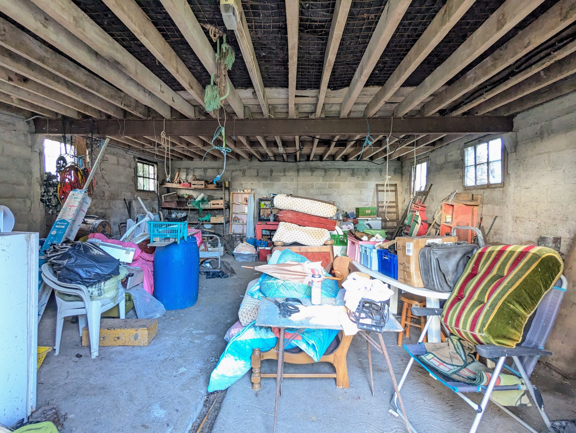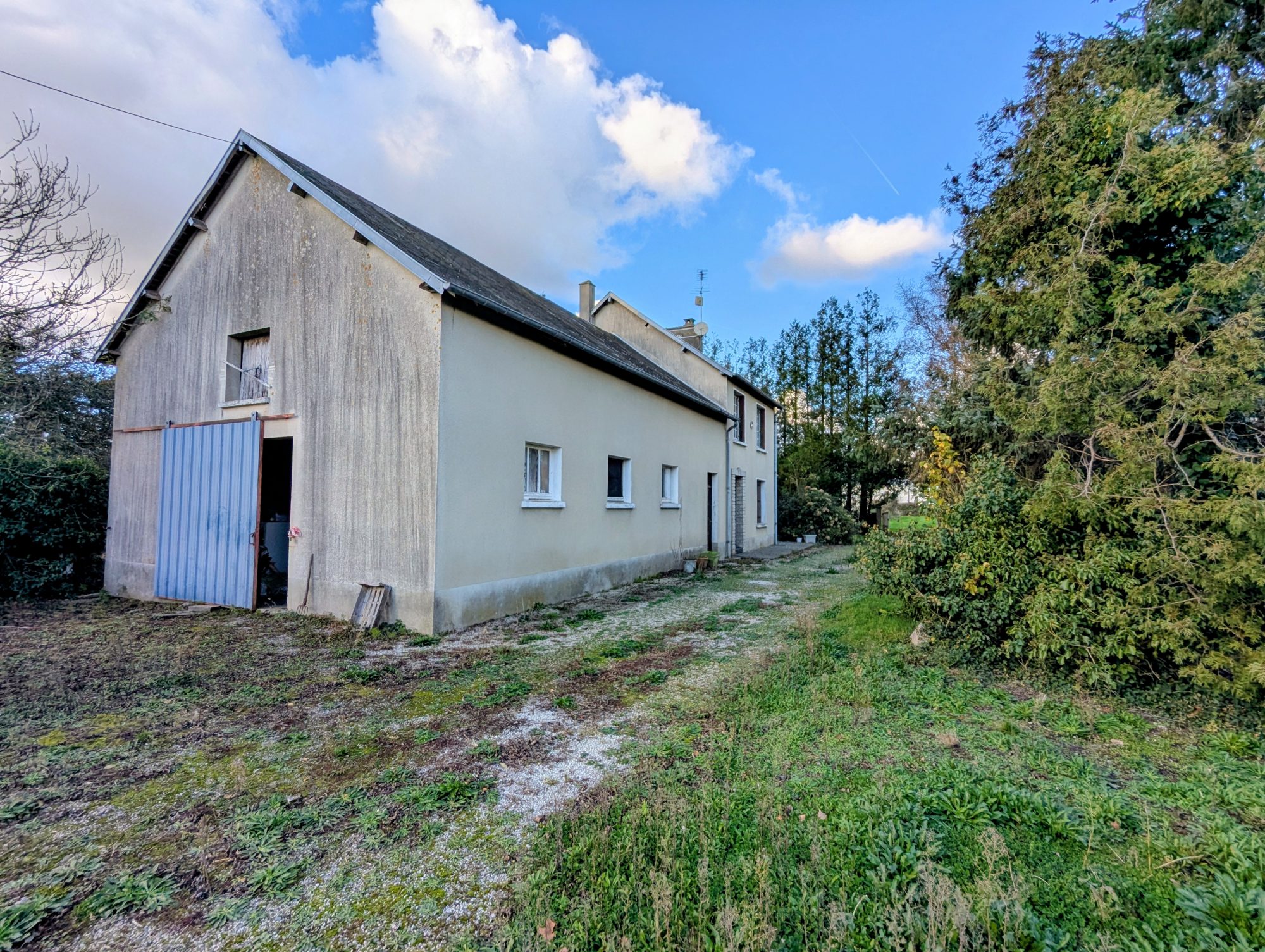 Attenant à la maison, vous trouverez également une cave, la chaufferie et un garage d’environ 60 m². Sur cette même parcelle d’environ 1,75 hectare se trouve un hangar de plus de 400 m².