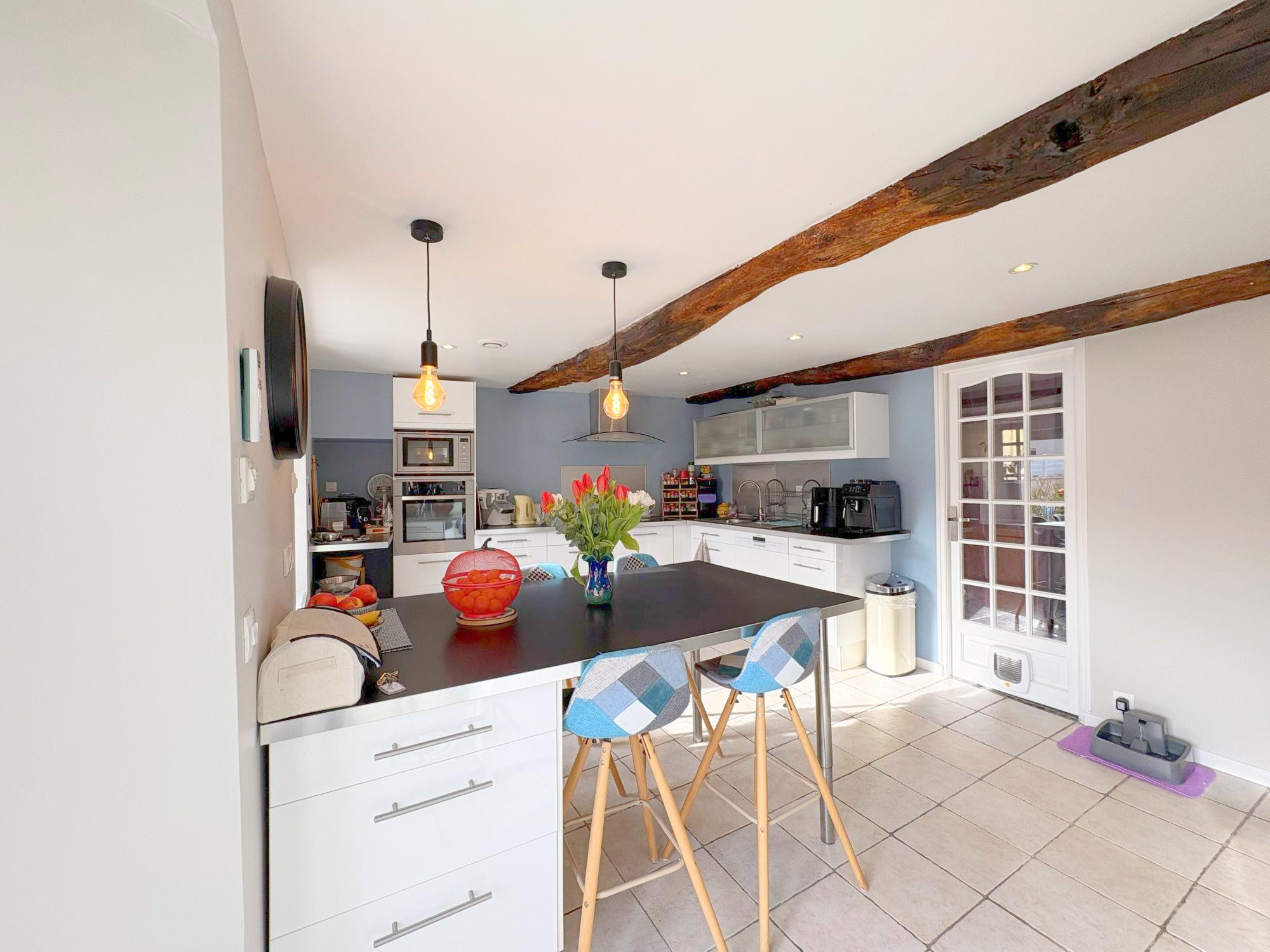 Au rez-de-chaussée : une entrée, un salon-séjour avec poêle à bois, une cuisine aménagée et équipée, une buanderie avec lavabo, une salle d'eau avec WC.