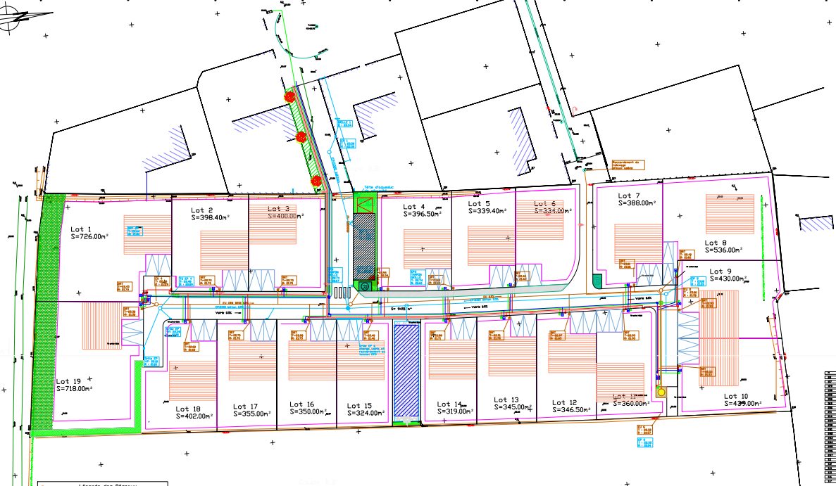 Les terrains, d’une superficie allant de 319 m² à 726 m², entièrement viabilisés, sont libres de constructeur et bénéficient de l’assainissement collectif.